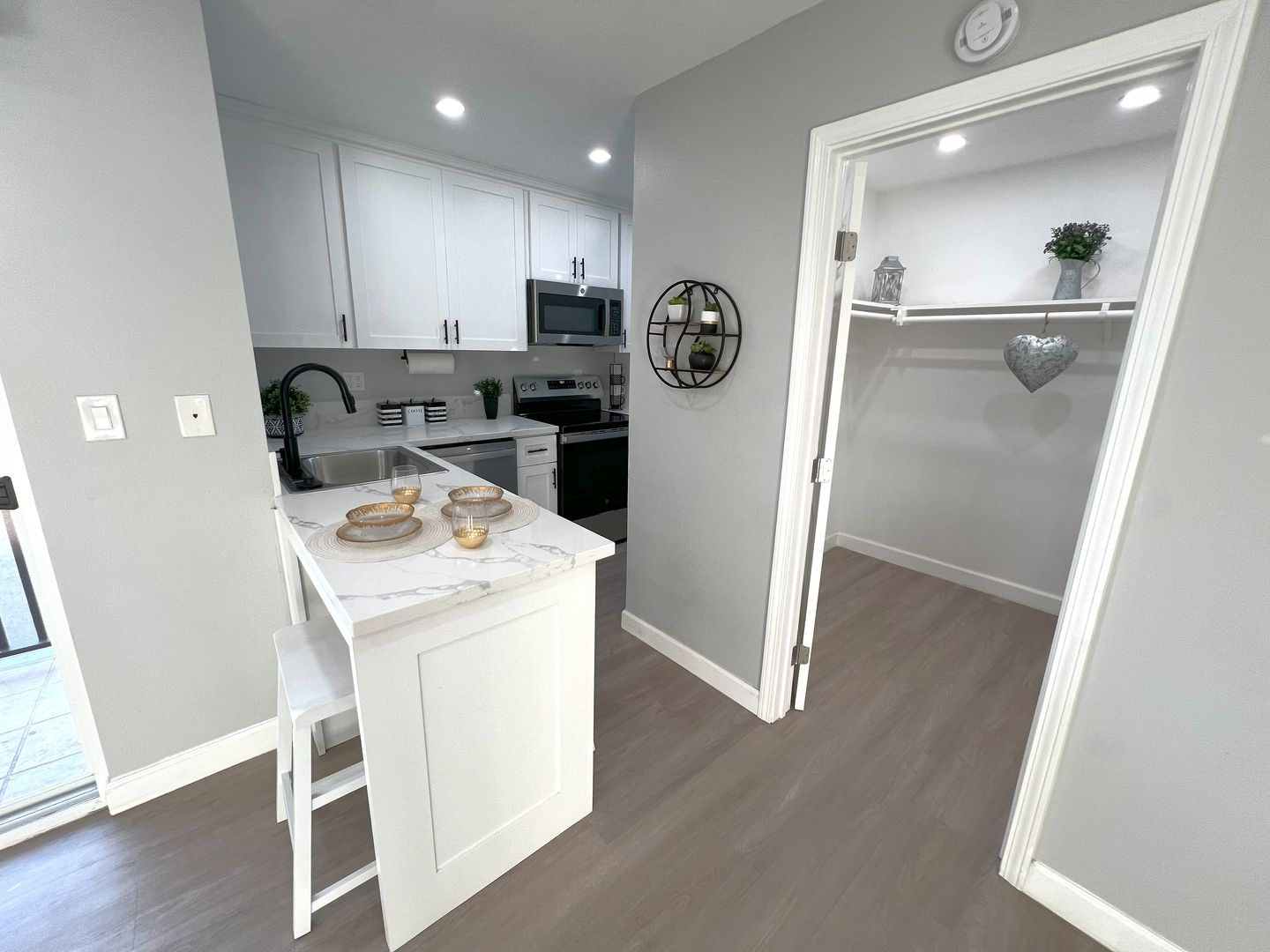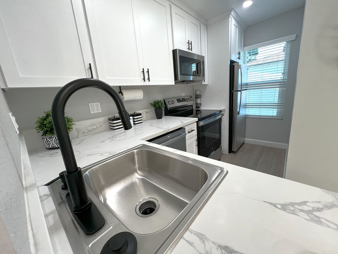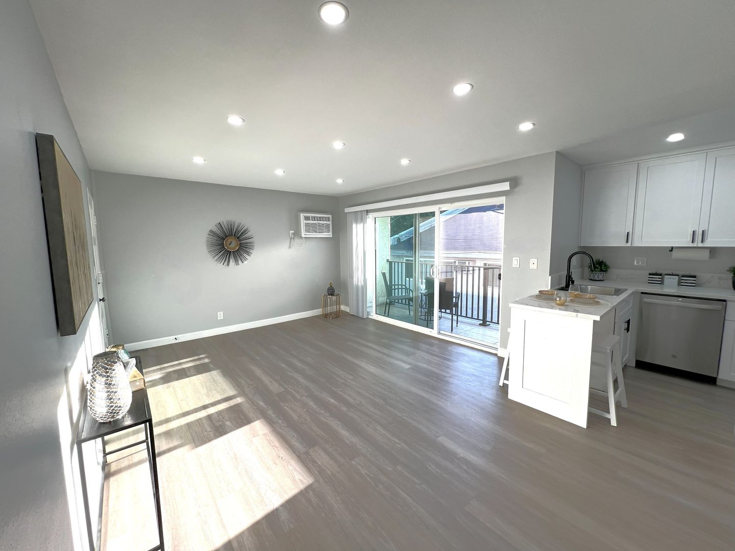 Welcome to Estrellita, a newly renovated studio apartment located in the heart of Los Alamitos. This apartment boasts a modern design with all new windows and blinds, new shaker cabinets, new interior doors, and new quartz countertops. The living room and kitchen are illuminated by new recessed lighting, creating a warm and inviting atmosphere. The kitchen is equipped with new stainless-steel appliances and a large sink with a garbage disposal. It also features a two-person bar nook, perfect for casual dining. The apartment has a large walk-in closet with a closet door, providing ample storage space. The bathroom is updated with new light fixtures and accessories. The apartment is cooled by air conditioning and has a patio off the living room, offering a private outdoor space. The hard surface flooring and baseboards throughout the apartment are all new, and the walls are freshly painted with a two-tone color scheme. The apartment complex offers on-site management and a laundry facility for added convenience. Plus, it's located in the Blue Ribbon Los Alamitos School District. Experience the comfort and convenience of living at Estrellita.