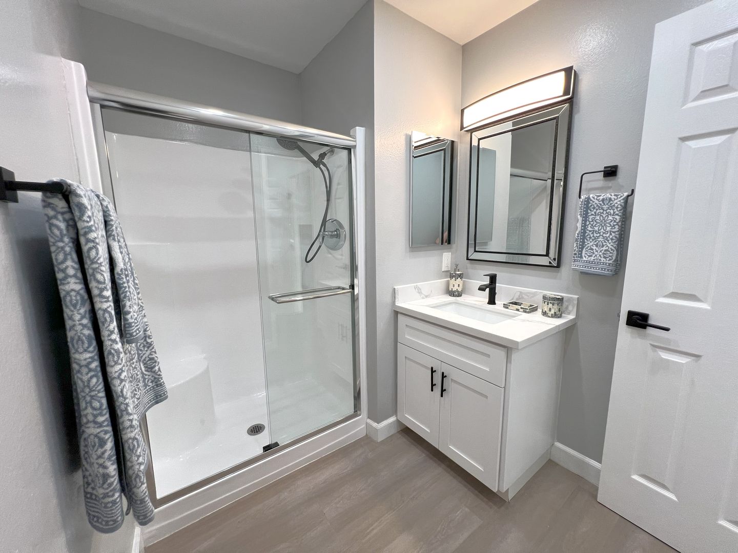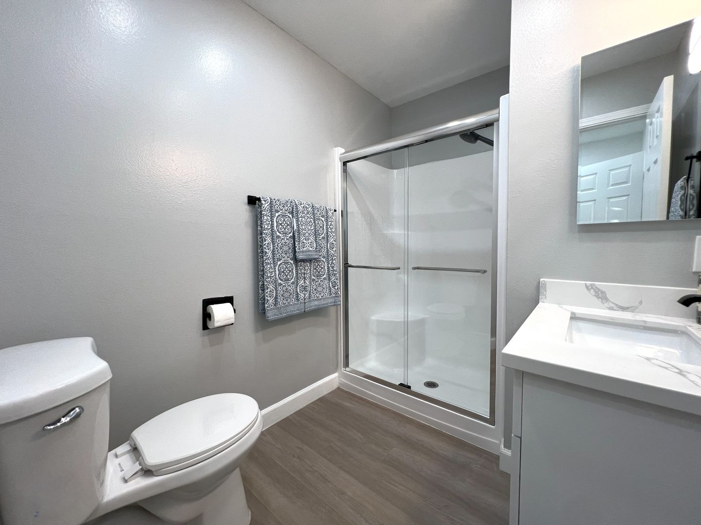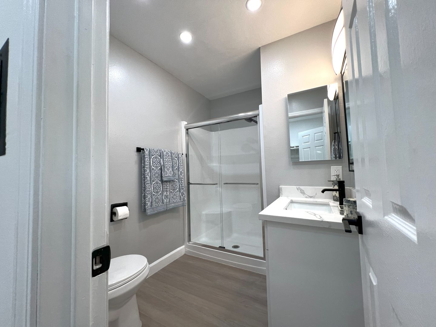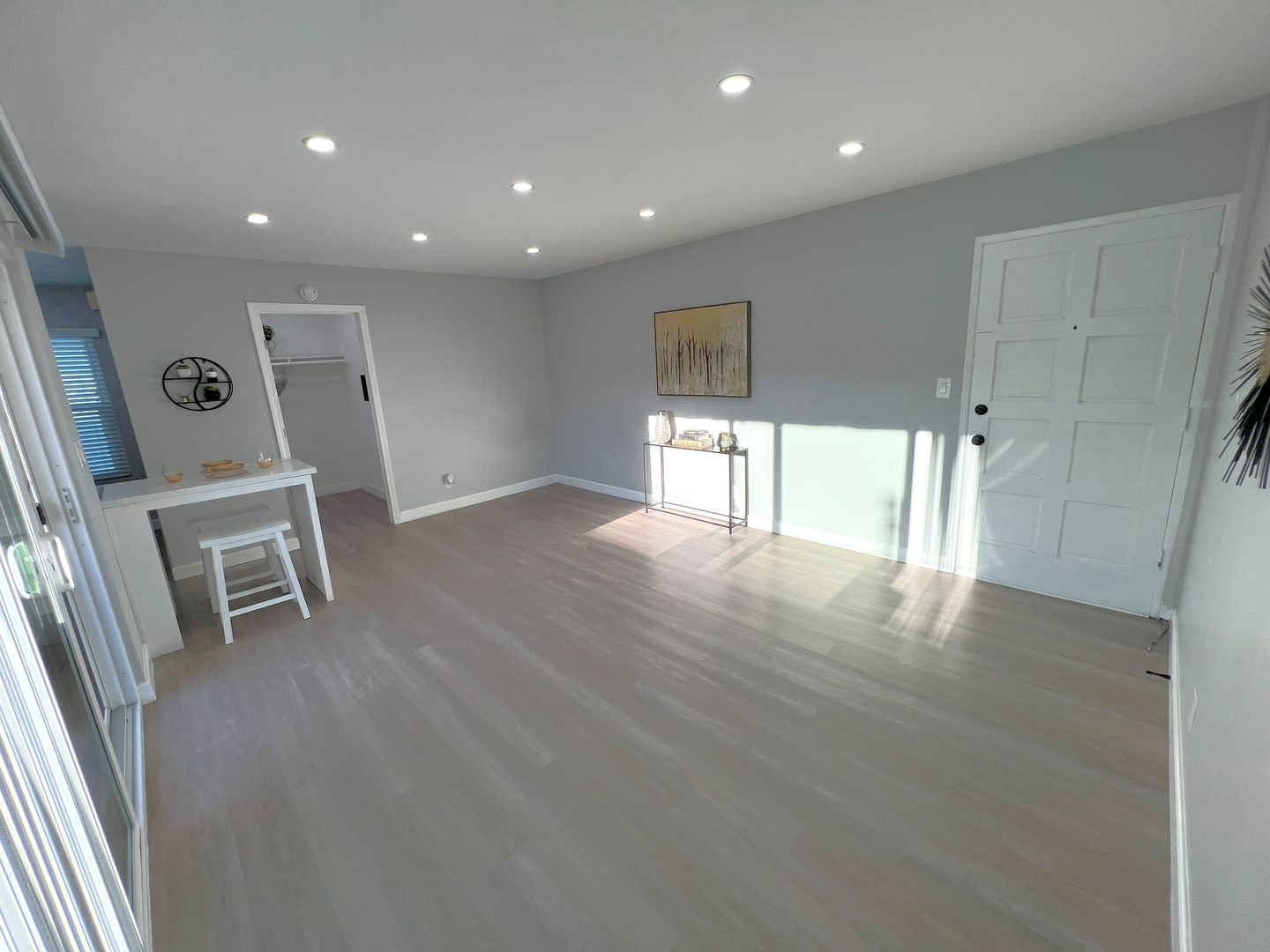 Welcome to Estrellita, a newly renovated studio apartment located in the heart of Los Alamitos. This apartment boasts a modern design with all new windows and blinds, new shaker cabinets, new interior doors, and new quartz countertops. The living room and kitchen are illuminated by new recessed lighting, creating a warm and inviting atmosphere. The kitchen is equipped with new stainless-steel appliances and a large sink with a garbage disposal. It also features a two-person bar nook, perfect for casual dining. The apartment has a large walk-in closet with a closet door, providing ample storage space. The bathroom is updated with new light fixtures and accessories. The apartment is cooled by air conditioning and has a patio off the living room, offering a private outdoor space. The hard surface flooring and baseboards throughout the apartment are all new, and the walls are freshly painted with a two-tone color scheme. The apartment complex offers on-site management and a laundry facility for added convenience. Plus, it's located in the Blue Ribbon Los Alamitos School District. Experience the comfort and convenience of living at Estrellita.