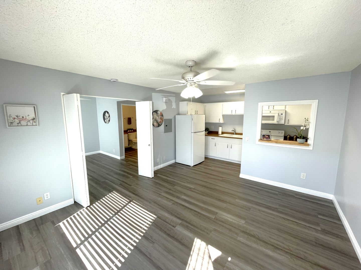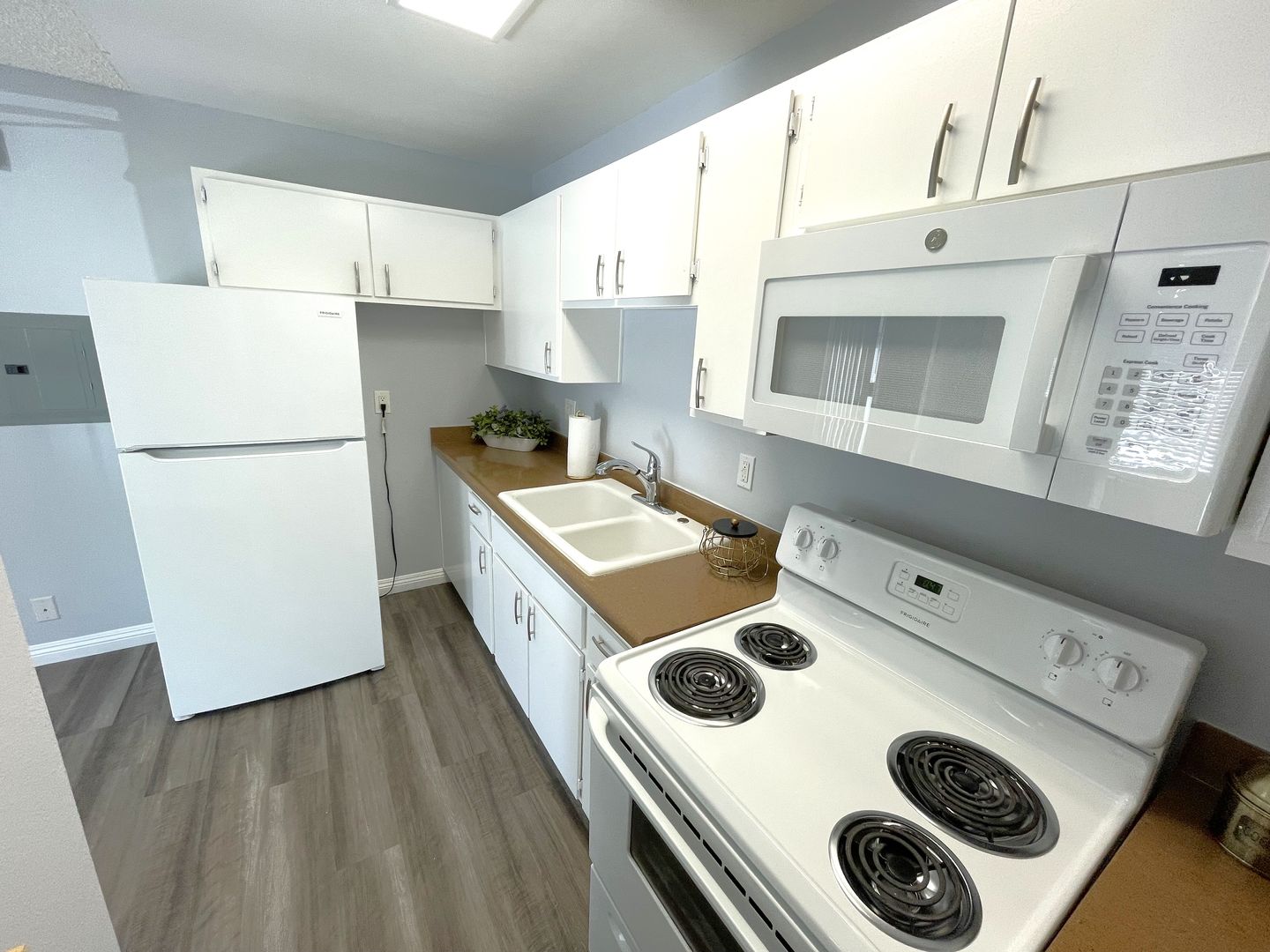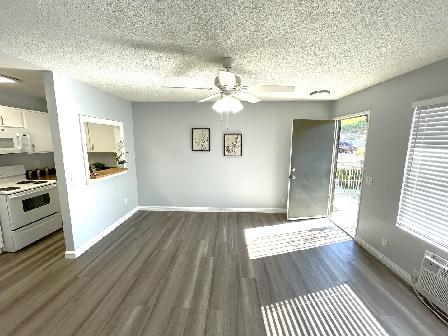 At Rockcrest Villas in Lakeside, CA, we are a 55 + Community. We offer youngsters 55 years and up comfortable, newly renovated one bedroom apartments featuring a standard size stove and refrigerator, microwave, garbage disposal, abundant cabinets and counter space, air conditioning, ceiling fans, walk-in closet and linen closet, patio or balcony with storage, assigned parking, affordable on-site laundry, community patio with BBQ. Owner pays water and trash.