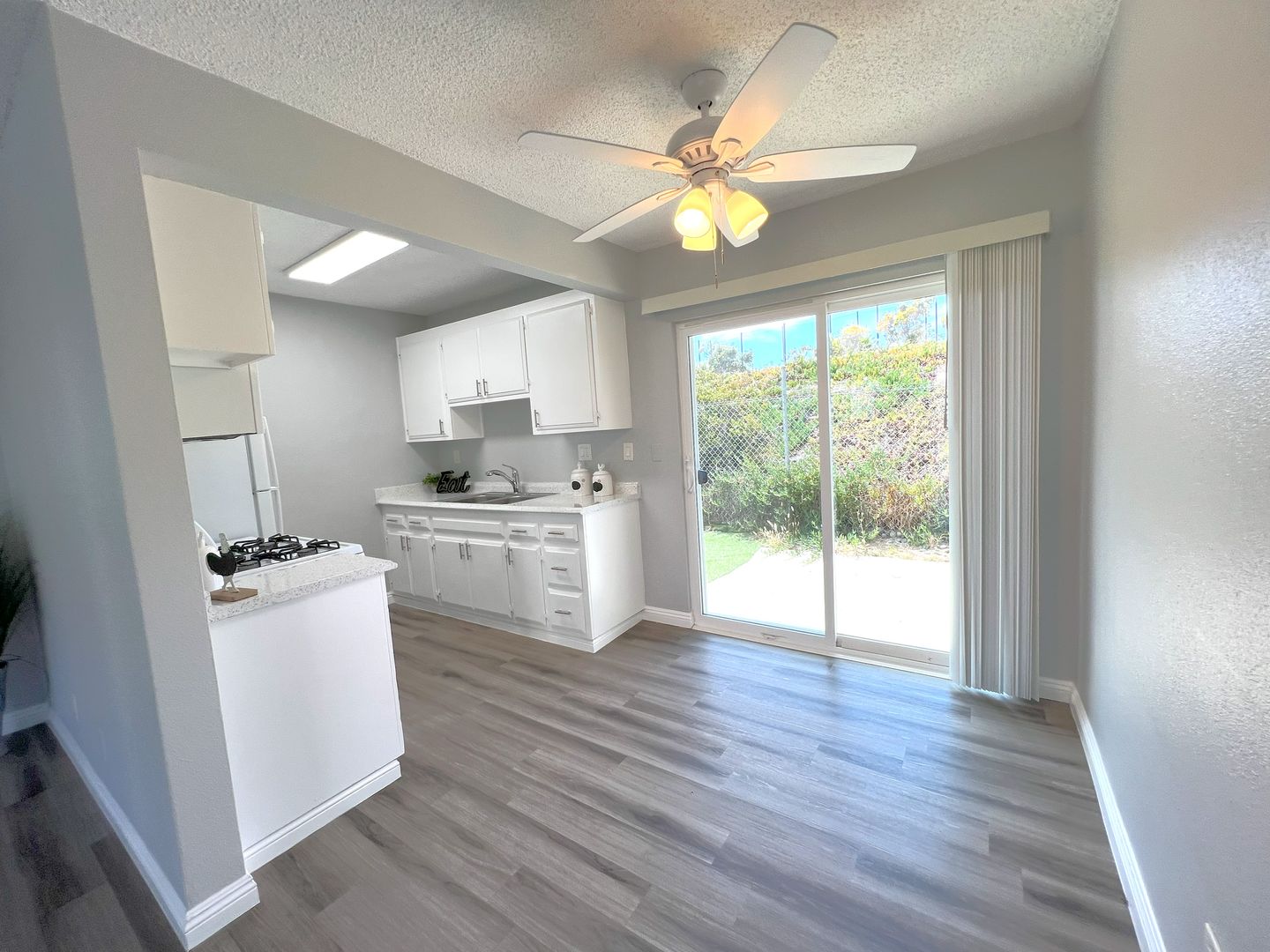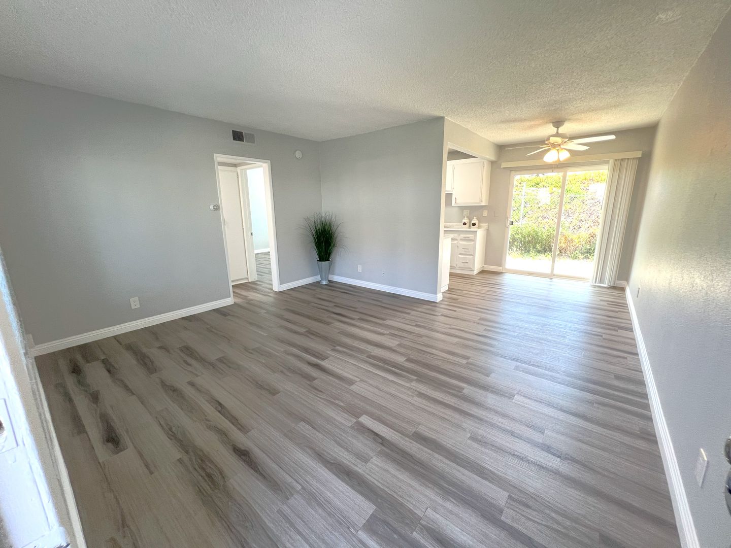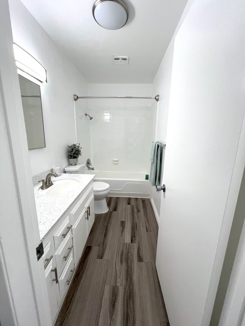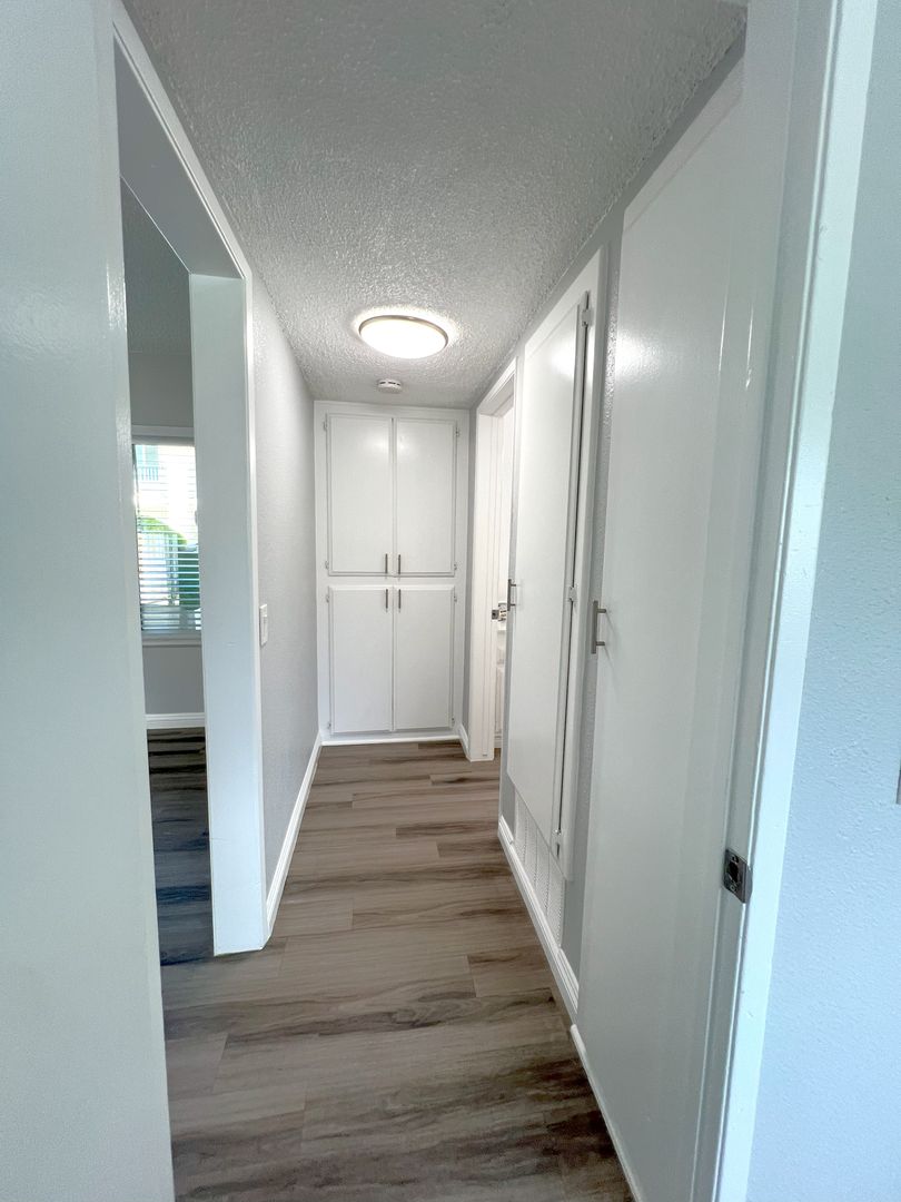 Welcome to Pacific View Apartments, your new home in the heart of Oceanside. This one-bedroom, one-bathroom apartment offers a blend of comfort, style, and convenience. The apartment features a private patio/balcony that provides a perfect spot for relaxation. Inside, you'll find large closets for ample storage, a refrigerator, and a gas range for your culinary adventures. The apartment has been recently updated with all new windows and blinds, new light fixtures, bathroom accessories, and hard-wired ceiling fans in the bedroom and dining room. The new hard surface flooring and baseboards throughout, along with the updated two-tone paint, add a modern touch to the space. The apartment also includes a new linen closet off the hallway for additional storage. On-site laundry facilities are available for your convenience. The management team is bilingual, ensuring clear communication for all residents. The private backyard/patio is an added bonus, offering a personal outdoor space for you to enjoy. Experience the best of Oceanside living at Pacific View Apartments.