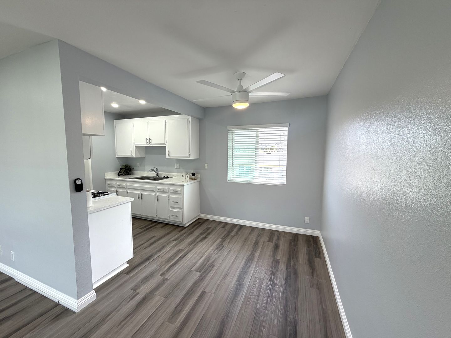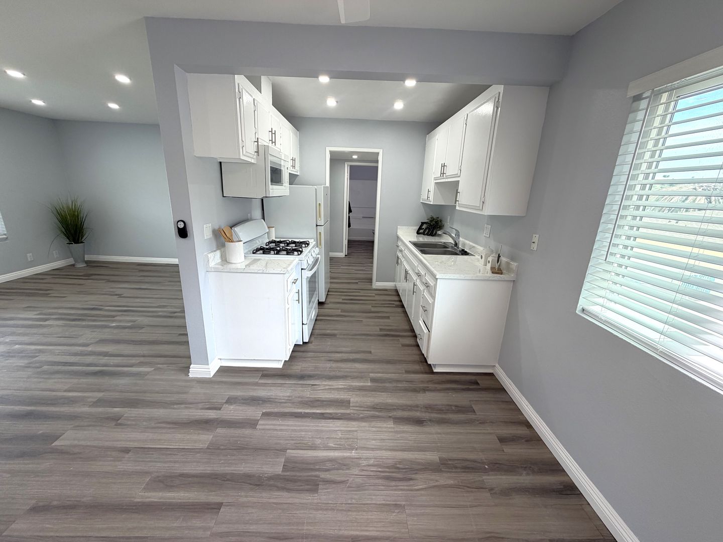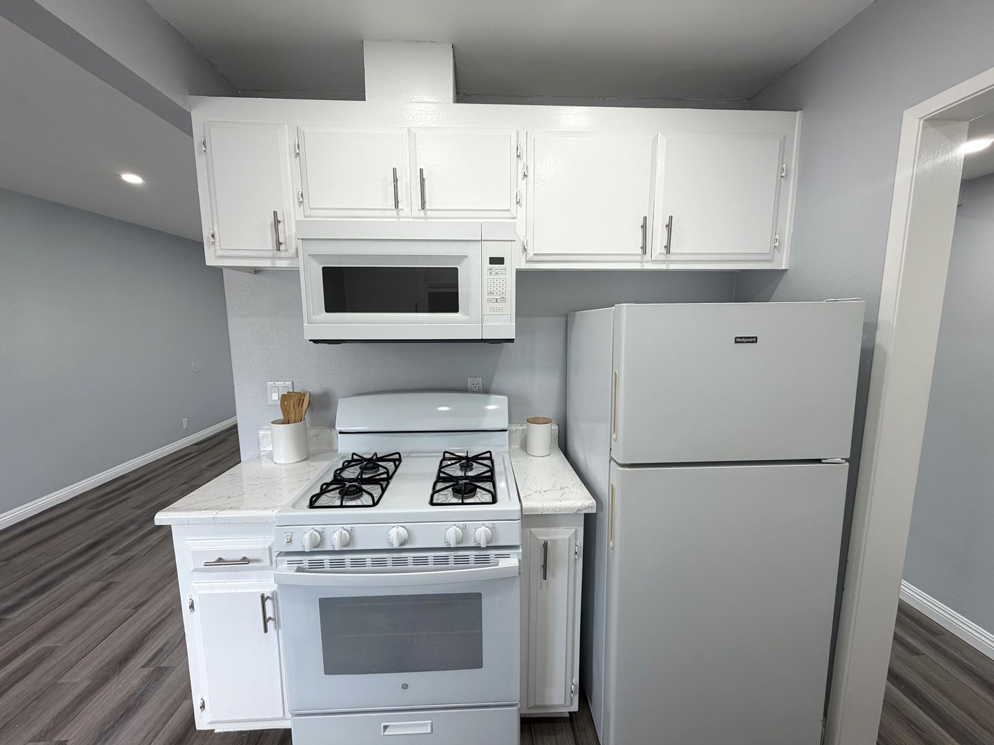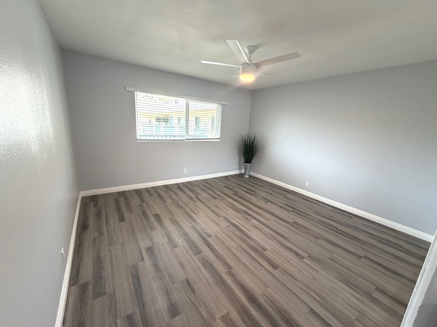 Welcome to Pacific View Apartments in Oceanside — a refreshed 1-bedroom, 1-bath residence featuring thoughtful updates throughout. The unit includes a microwave, refrigerator, and gas range, plus new hard surface flooring and baseboards, updated two-tone paint, and all-new windows and blinds. New recessed and light fixtures, bathroom accessories, and hard-wired ceiling fans in the bedroom and dining room enhance comfort and style. Practical touches include a large hallway with linen closet, on-site laundry facility, on-site management with bilingual staff, and digital conveniences such as online rent payments and an online maintenance portal.