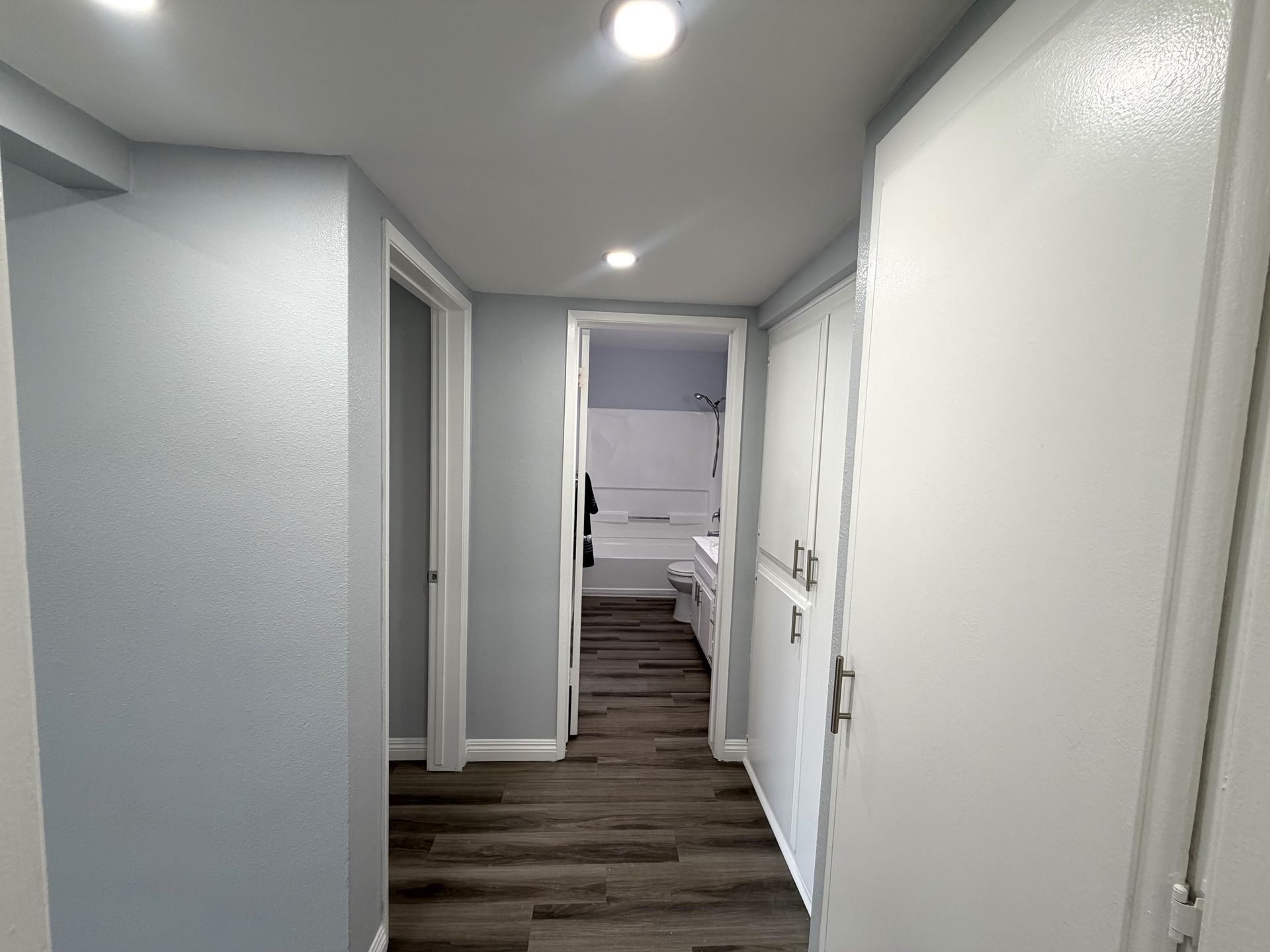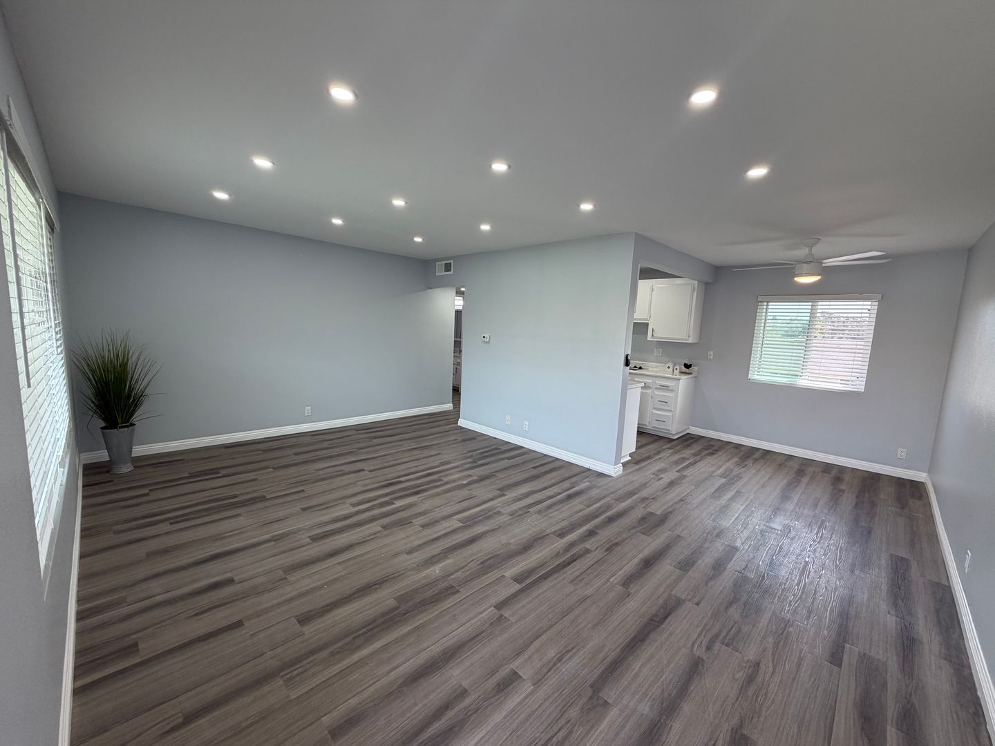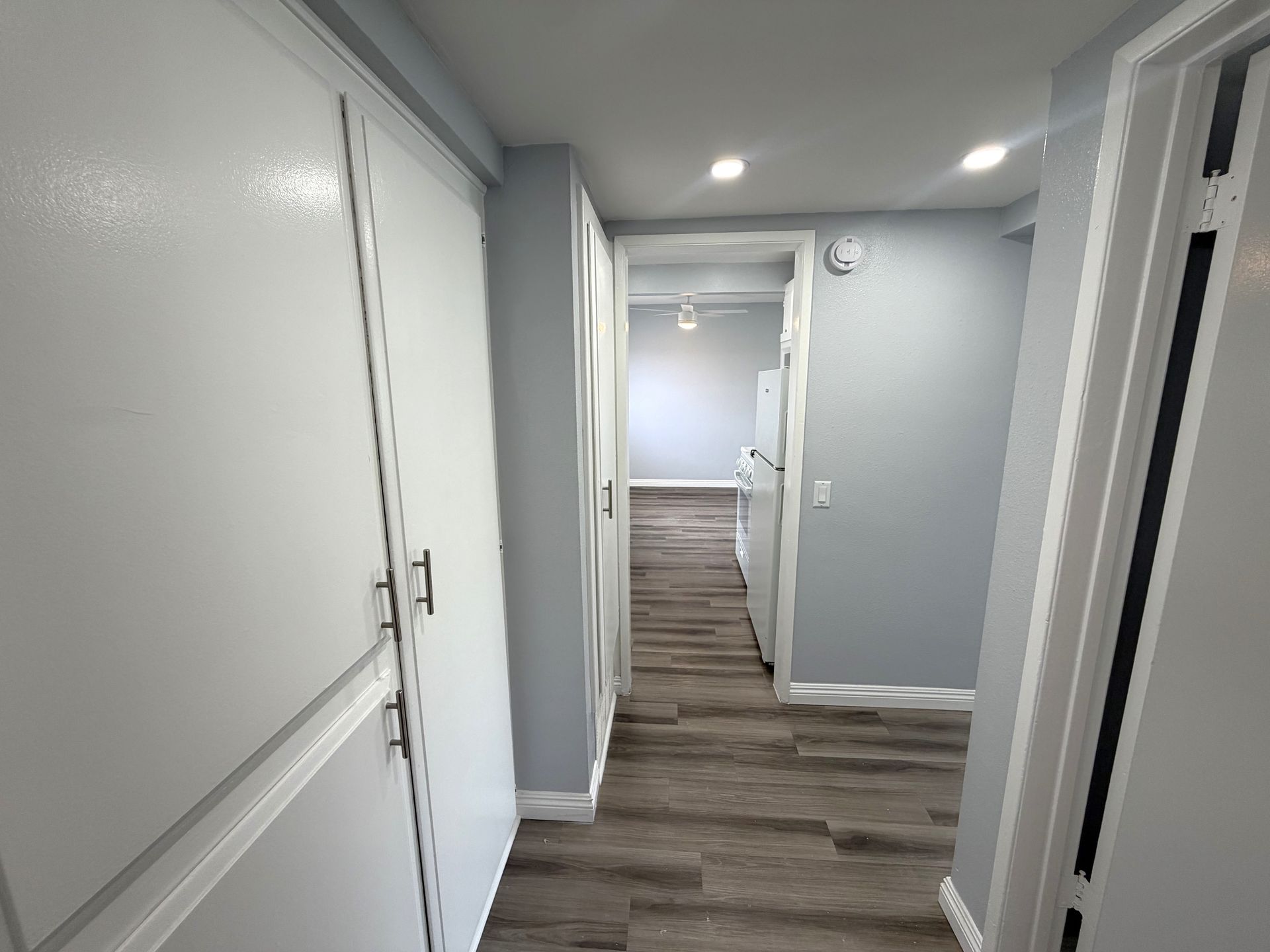 Welcome to Pacific View Apartments in Oceanside — a refreshed 1-bedroom, 1-bath residence featuring thoughtful updates throughout. The unit includes a microwave, refrigerator, and gas range, plus new hard surface flooring and baseboards, updated two-tone paint, and all-new windows and blinds. New recessed and light fixtures, bathroom accessories, and hard-wired ceiling fans in the bedroom and dining room enhance comfort and style. Practical touches include a large hallway with linen closet, on-site laundry facility, on-site management with bilingual staff, and digital conveniences such as online rent payments and an online maintenance portal.