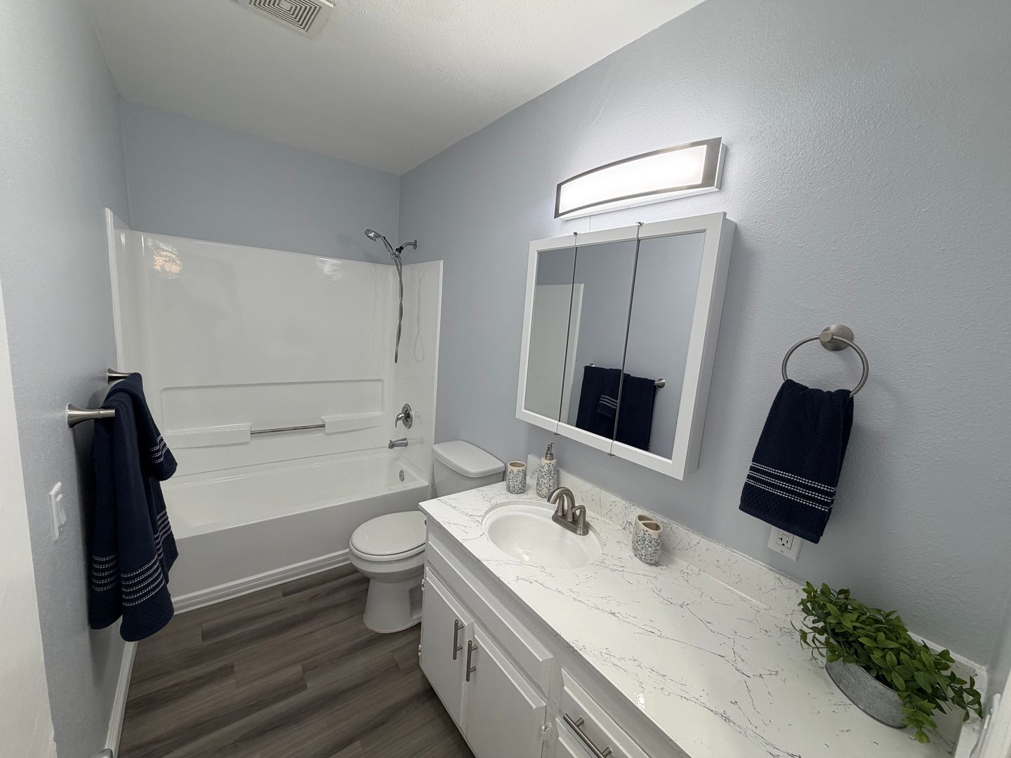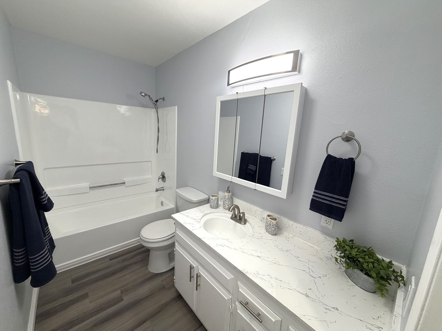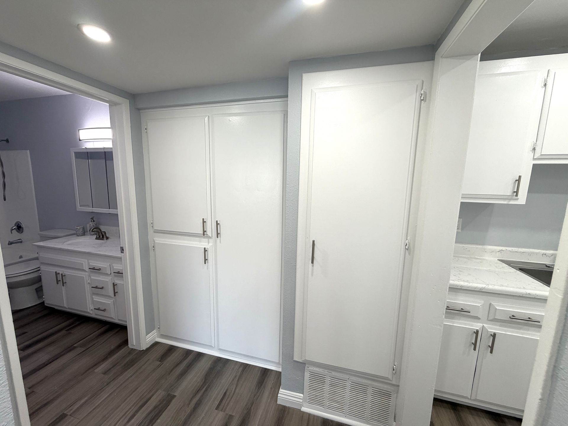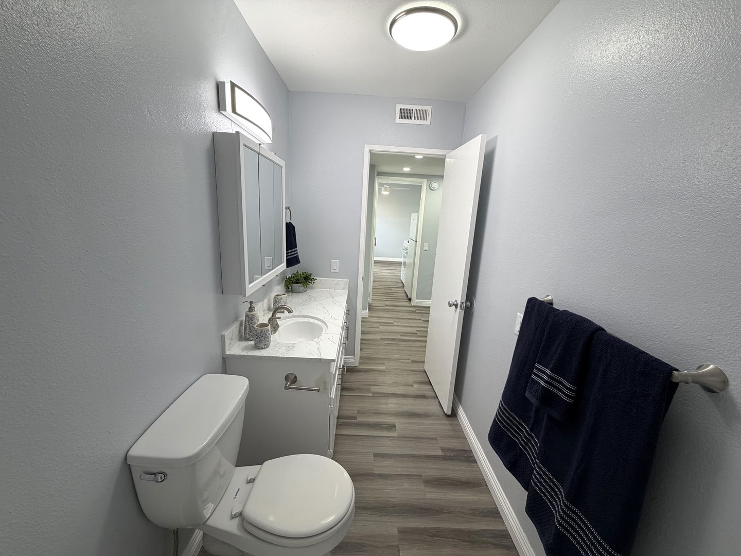 Welcome to Pacific View Apartments in Oceanside — a refreshed 1-bedroom, 1-bath residence featuring thoughtful updates throughout. The unit includes a microwave, refrigerator, and gas range, plus new hard surface flooring and baseboards, updated two-tone paint, and all-new windows and blinds. New recessed and light fixtures, bathroom accessories, and hard-wired ceiling fans in the bedroom and dining room enhance comfort and style. Practical touches include a large hallway with linen closet, on-site laundry facility, on-site management with bilingual staff, and digital conveniences such as online rent payments and an online maintenance portal.