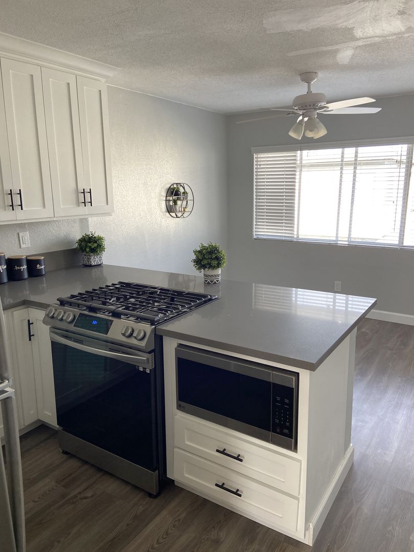 Welcome to Islandia Apartments, your new home in the heart of Westminster. This stunning 2-bedroom, 1-bathroom apartment is newly renovated with a host of modern amenities. The apartment features hard-wired ceiling fans in the dining room and bedrooms, new shaker cabinets, quartz countertops, and new light fixtures and bathroom accessories. The living room and kitchen are illuminated by new recessed lighting, and the entire apartment boasts new hard surface flooring and baseboards. The windows and blinds have been replaced throughout, and the walls are freshly painted in a chic two-tone color scheme. The kitchen is a chef's dream with new stainless-steel appliances, a large sink with garbage disposal, and a stove top kitchen island with seating. The large hallway includes a linen closet. The master bedroom has beautiful with new mirrored closet doors. On-site management ensures your needs are promptly addressed, and the on-site laundry facility adds convenience to your daily routine. Experience the best of modern living at Islandia Apartments.